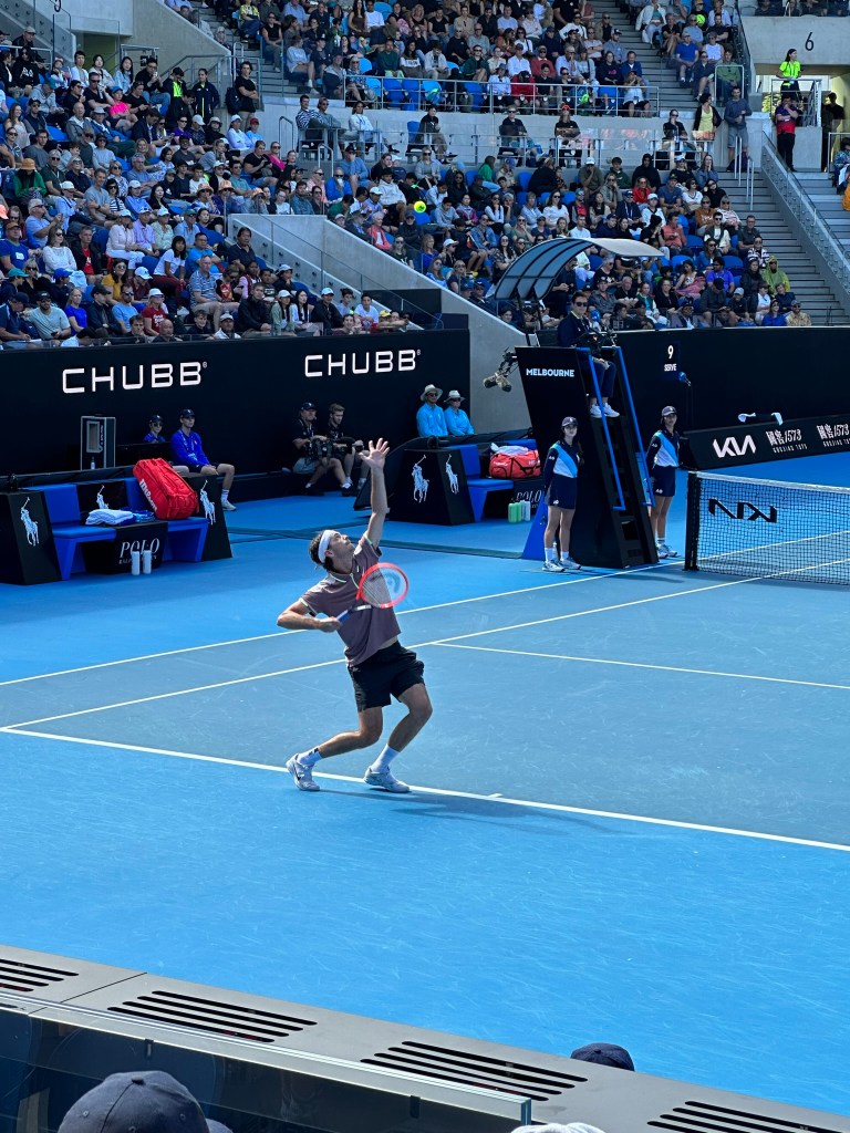 Darauf folgte Fritz’s Landsmann Frances Tiafoe. Auf ihn habe ich mich nach der Ansetzung der Matches besonders gefreut. Viel Zeit das Match anzuschauen blieb jedoch aufgrund der Regenpause am Morgen leider nicht. Denn wir hatten ja Tickets für die Night Session in der Rod Laver Arena.